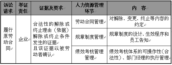 三、合同解除或終止 法律責任:恢復原勞動關系或違法解除的雙倍賠償金 員工對于勞動合同解除或終止的爭議大多集中在解除或終止的理由不成立或理由違法,企業需要證明的是已經合法生效的理由或依據,且該理由和依據使員工已經獲知并承諾遵守的。這部分爭議,也是對企業人力資源管理在勞動合同合同文本的內容設計、規章制度管理和績效考核管理體系等方面的嚴謹性、科學性和監督執行的有效性等方面的考驗。